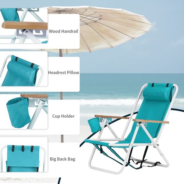 Discover the ultimate in outdoor relaxation with our Folding Beach Chair, designed to enhance your beach days, camping trips, and backyard lounging. This portable chair combines the convenience of a backpack with the comfort of a luxury seat. Featuring a versatile four-position recline, it lets you adjust from an upright posture to a more relaxed angle with ease. Whether you're soaking up the sun by the sea or enjoying a concert under the stars, this chair is your perfect companion for any outdoor activity.