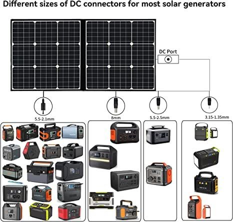 The 100W solar panel comes with a 4 in 1 connector adapter kit to charge your power stations.