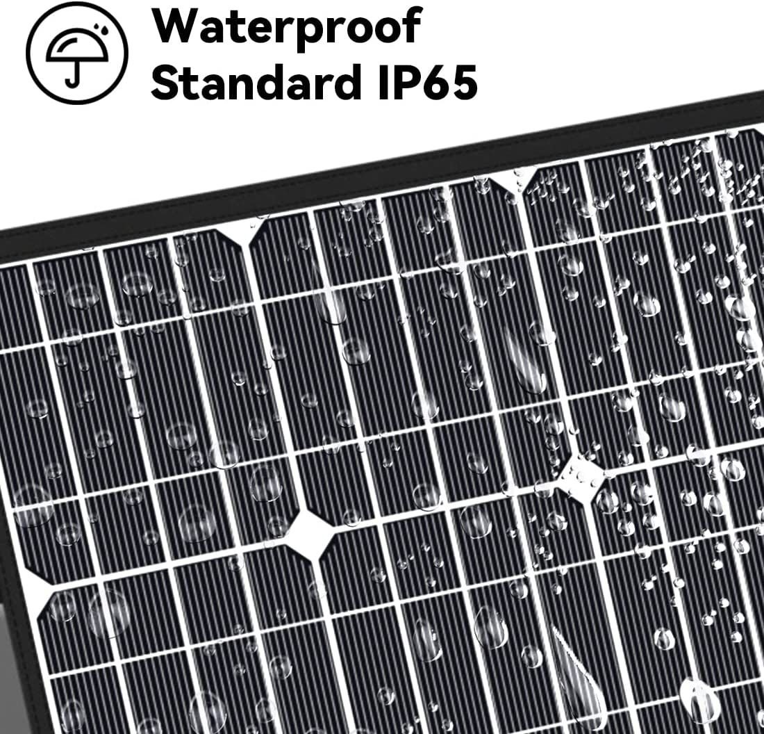 4.[PORTABLE & FOLDABLE]: 100W Gofort solar panel is a foldable design with a handle, a fold size of 20.07*20.47 inches and weighing only 4.62lbs. It is convenient to carry it wherever you go and ideal for outdoor activities such as camping, climbing, hiking, picnic.