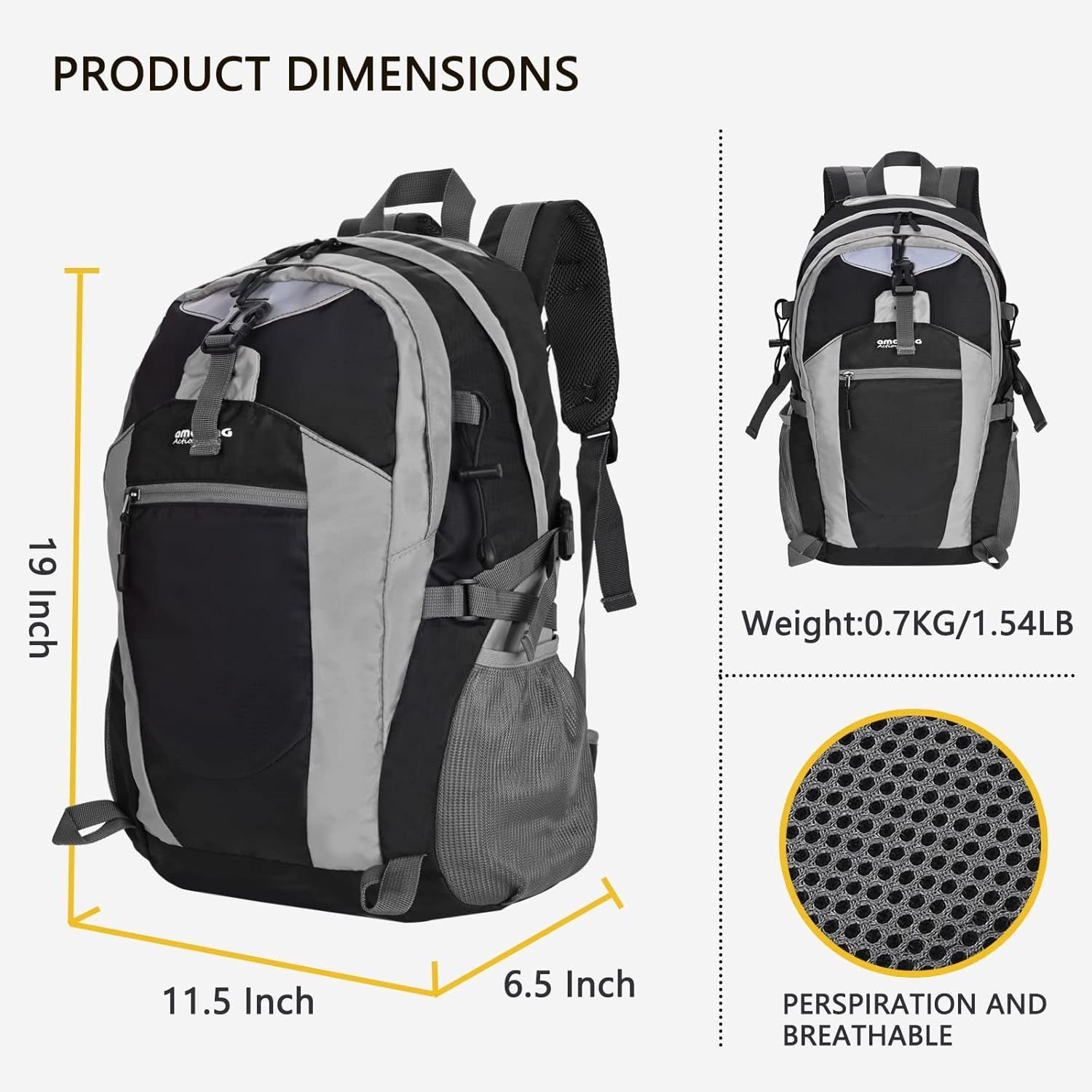 Hiking backpack is made of high quality rip-stop 420 polyster fabric,which is water resistant,tear resistant,anti-scratch and wear resistant.11.5*6.5*16in.