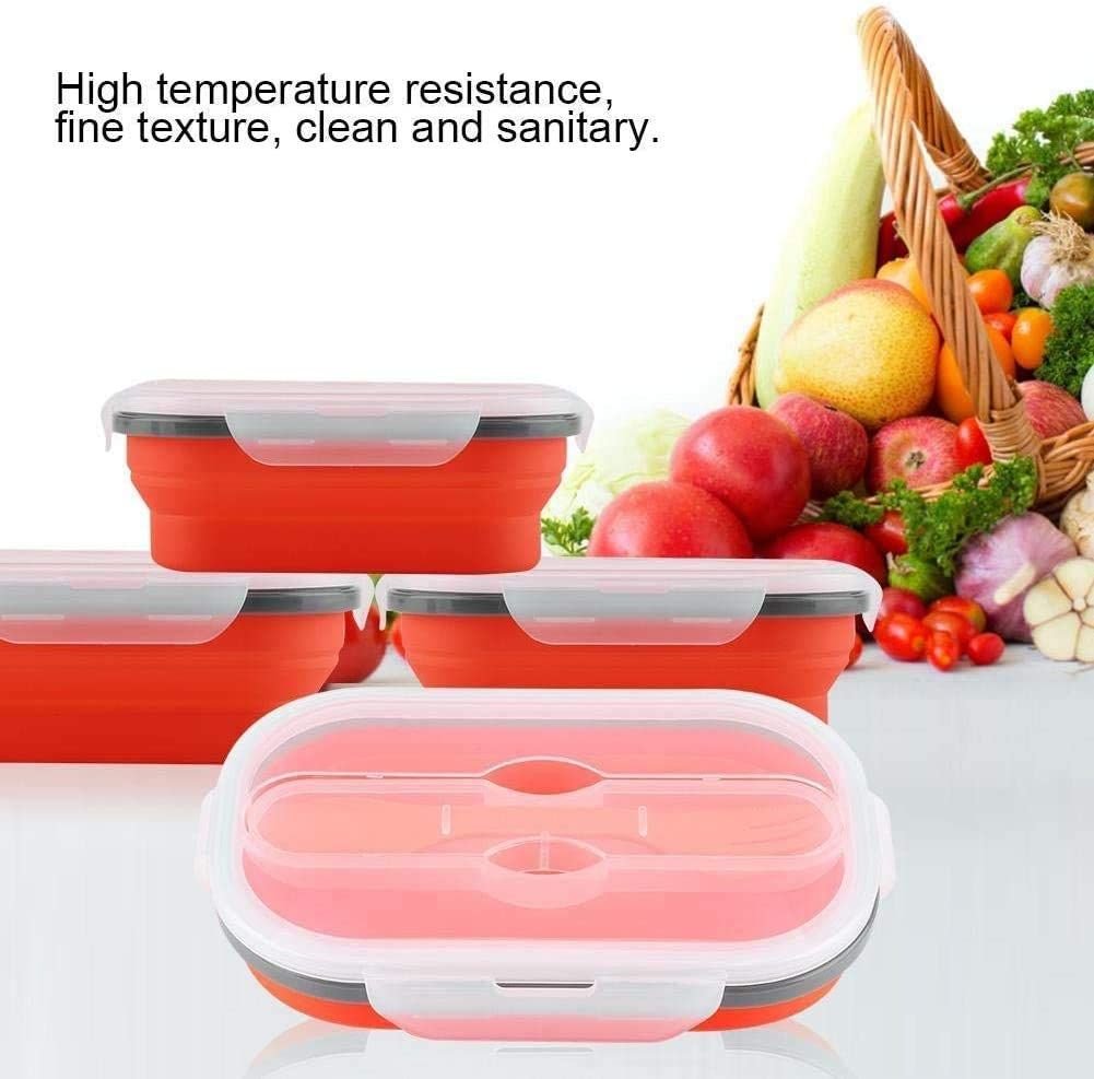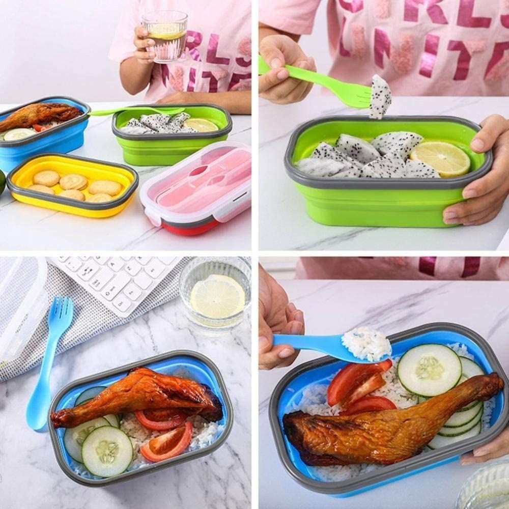 Lunch Box Collapsible Silicone Food Storage with Fork Spoon Expandable Eco Lunch Bento Box BPA-Free Dishwasher Freezer Microwave Safe