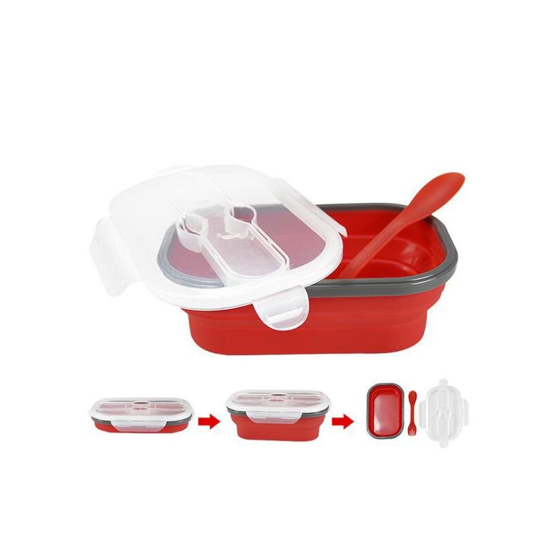 Home > Lunch Box Collapsible Silicone Food Storage with Fork Spoon Expandable Eco Lunch Bento Box BPA-Free Dishwasher Freezer Microwave Safe