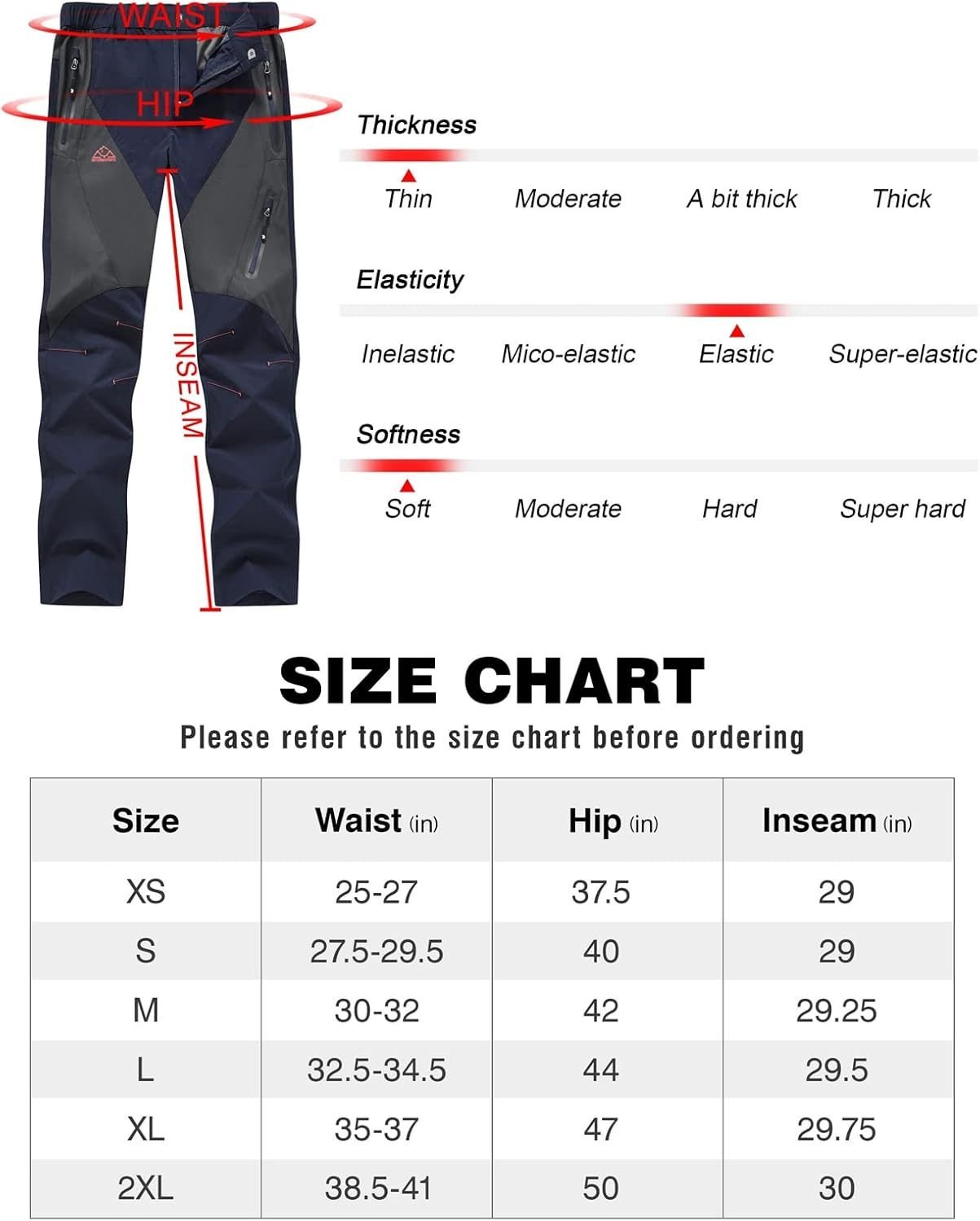 Adjustable waist circumference - button placket, lightweight quick drying hiking pants with elastic waistband, can easily fit your body.