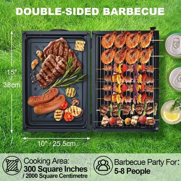 Durable Construction: Made of high-quality materials, this grill is built to last. The sturdy frame and heat-resistant surfaces ensure that it can withstand the rigors of outdoor use.