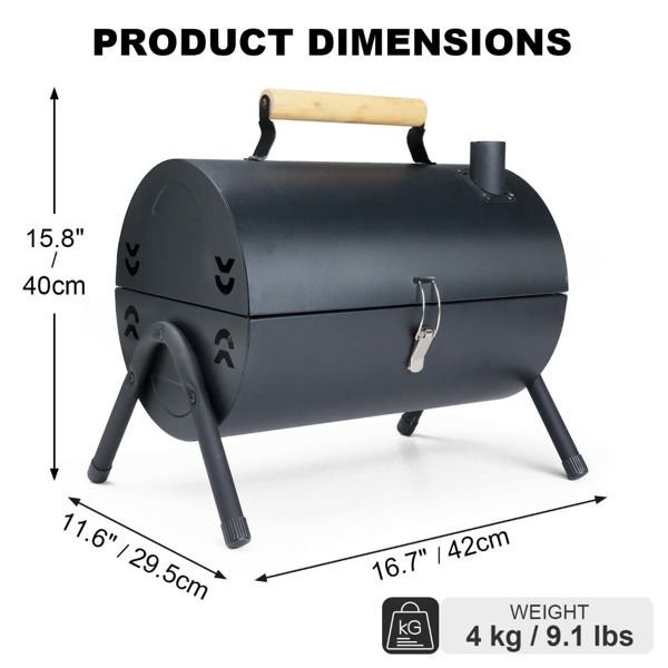 Compact and Portable: The table top grill is designed to be small and portable, making it easy to take on outdoor camping trips or picnics. With dimensions of 15.8in11.6in16.7in, it won't take up much space in your vehicle or campsite.