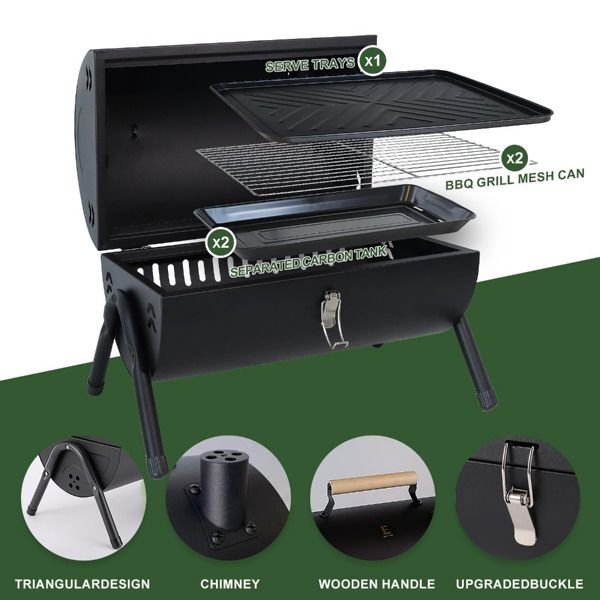 Charcoal with Smoker Function: This grill uses charcoal for a classic barbecue flavor, and it also features a smoker function. You can add wood chips or other smoking materials to infuse your food with a delicious smoky taste.