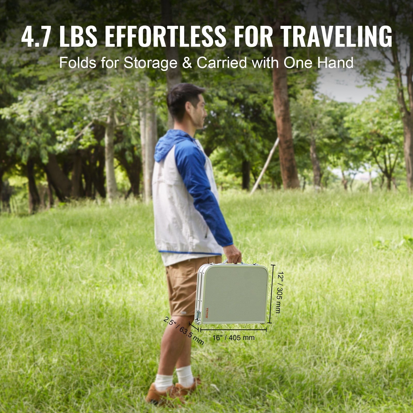 2.4.7Lb Portable Travel: Effortlessly lift with one hand during your travels. It can be folded and stored in just 4 steps. With compact dimensions of 405 x 305 x 63.5 mm / 16 x 12 x 2.5 inch, it takes up minimal space in the trunk of your car.